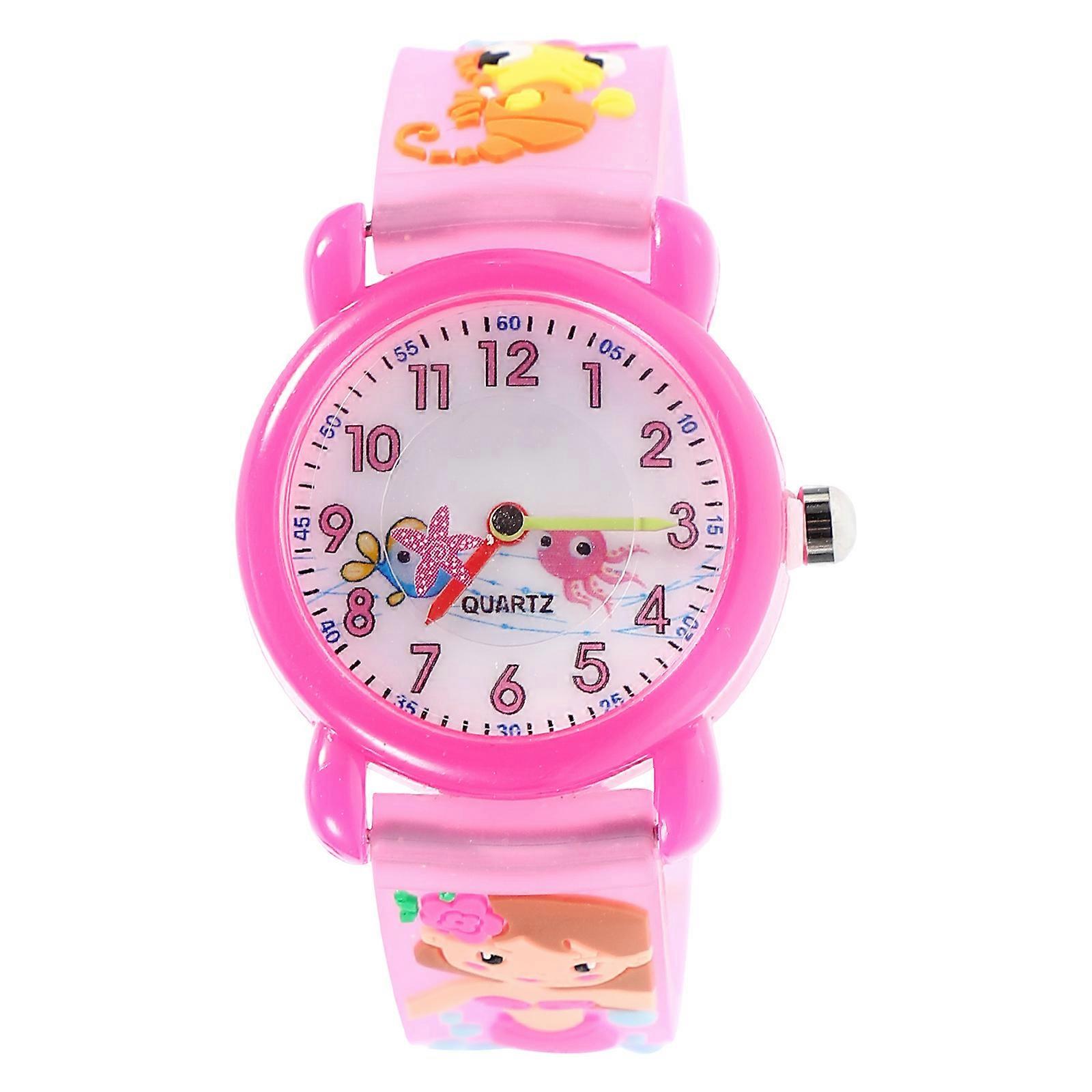 Children Watch Funny Cartoon Quartz Design For Kids Waterproof Outdoor Activities Round Shape Rosy 20.5X3X0.9cm 1Pcs