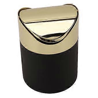 Desktop Trash Can Stainless Steel Household Mini Trash Basket Clamshell Paper Basket with Gold Lid