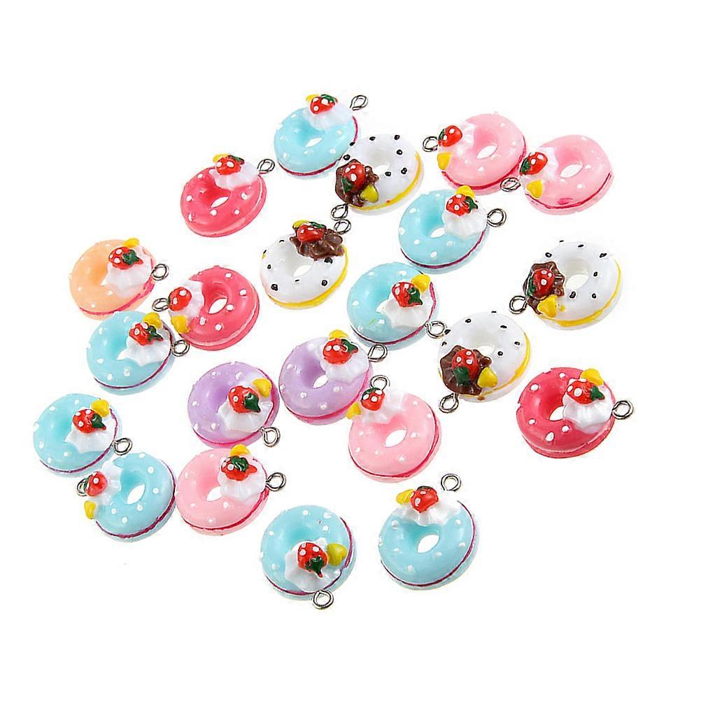 Resin Fruit Food Imitate Jewelry Strawberry Shape Pendants Assorted Color 2.2X2.2cm Outdoor Accessory 20Pcs