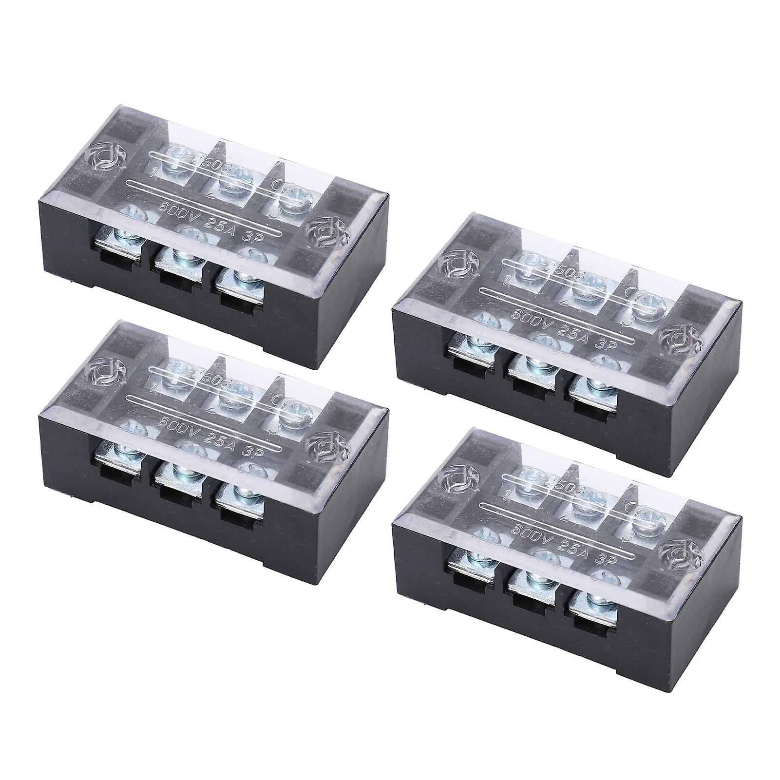 Terminal Strip Dual Row Screw Clamp High Current Wire Terminal Block with Cover 600V 25A 4pcs 3 Position (2503)