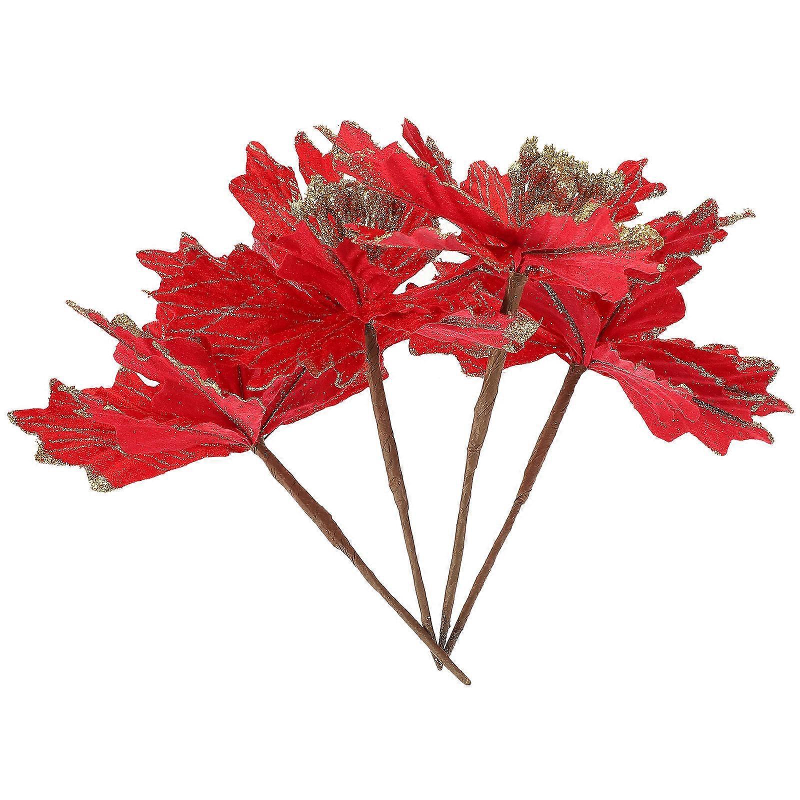 Artificial Poinsettia Flower Decorations Individual Artificial Poinsettia Christmas Party Atmosphere Fabric Gold-Embossed Velvet Cloth 4Pcs