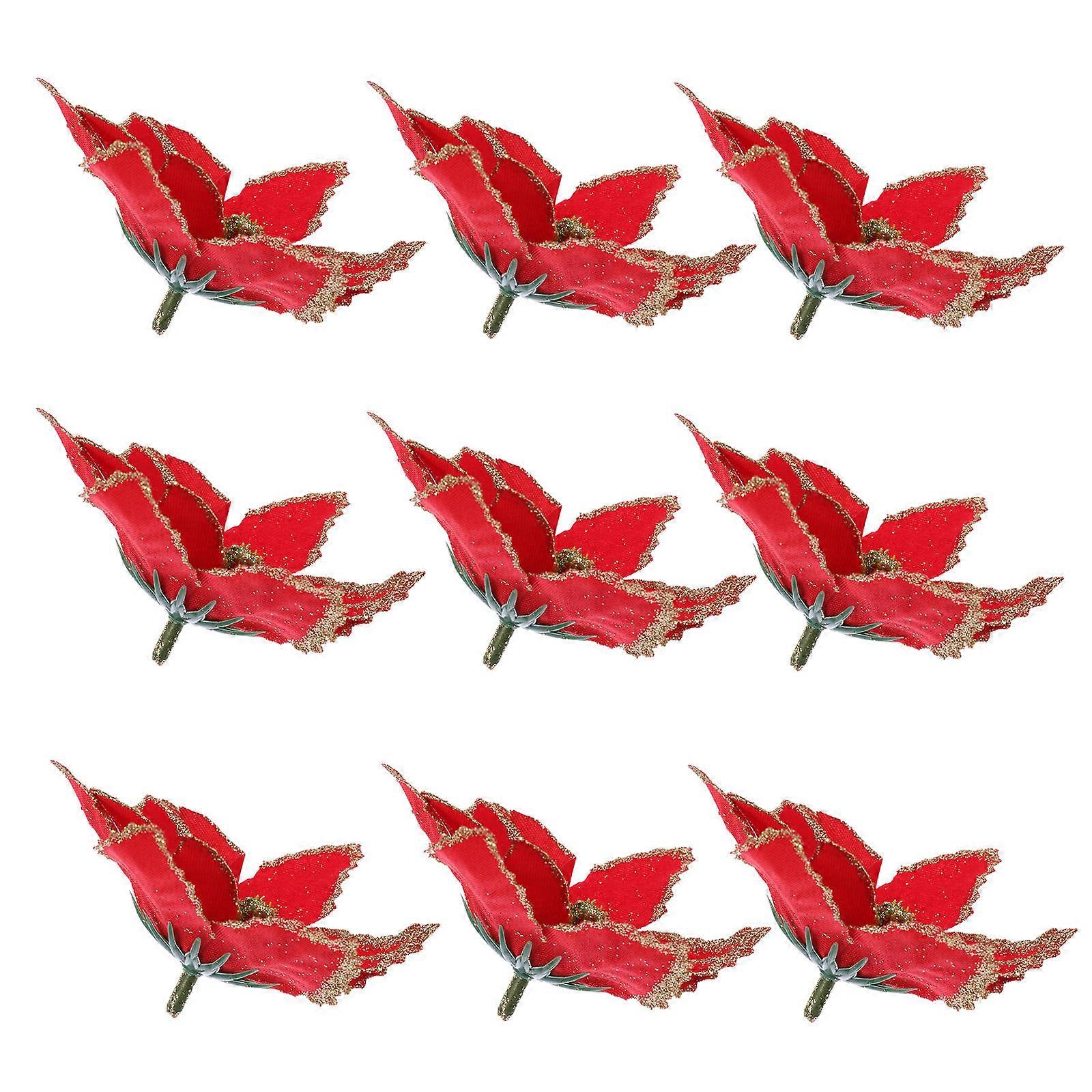 Artificial Flowers Decoration Red Simulated Flowers 9.5CM Plastic Cloth Gold Powder For Outdoor Decoration 24Pcs