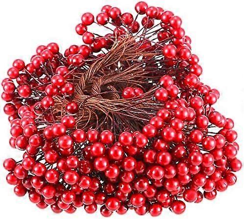 Artificial Holly Berries on Wire Stems, 250 Stems with 500 Pieces 8 mm Fake Berries for Tree Decorations Wreath Craft Use Wedding Party Favor (Red)