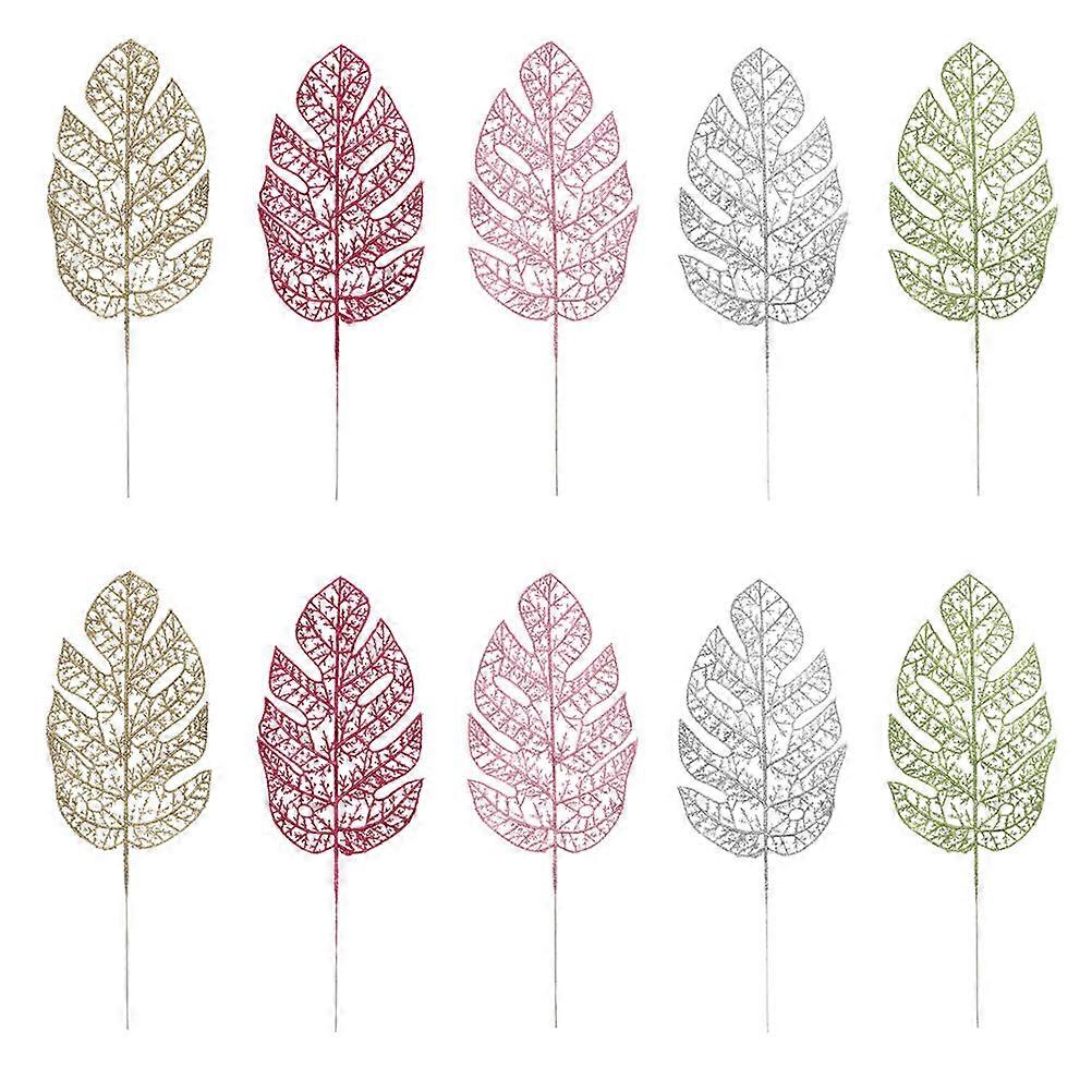 Artificial Palm Leaves Fake Glitter Fern Leaves Christmas Tree Decorative Plant Leaves Red 10Pcs