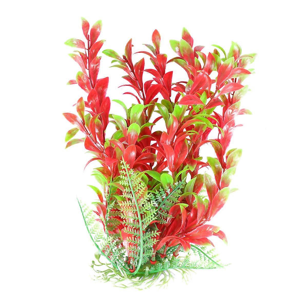 Artificial Plants Aquarium Red Simulation Water Grass Realistic Shape Lifelike Ornaments Home Decoration 25*12cm Ceramic Base for Fish Tank 1Set