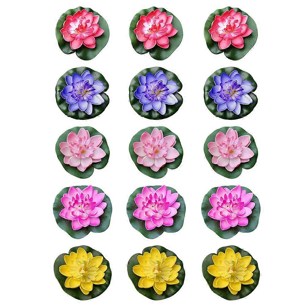 15pcs Artificial Pads for Ponds Floating Leaves Water Leaves for Home Outdoor Patio Pond Wedding Party Colorful Features - Material: EVA. - Colour: Colorful. - Size: Approx. 10. 00X10. 00X8. 00cm; 3. 93X3. 93X3. 14in. Package list: 4 pcs x 15pcs Simulation Adornments