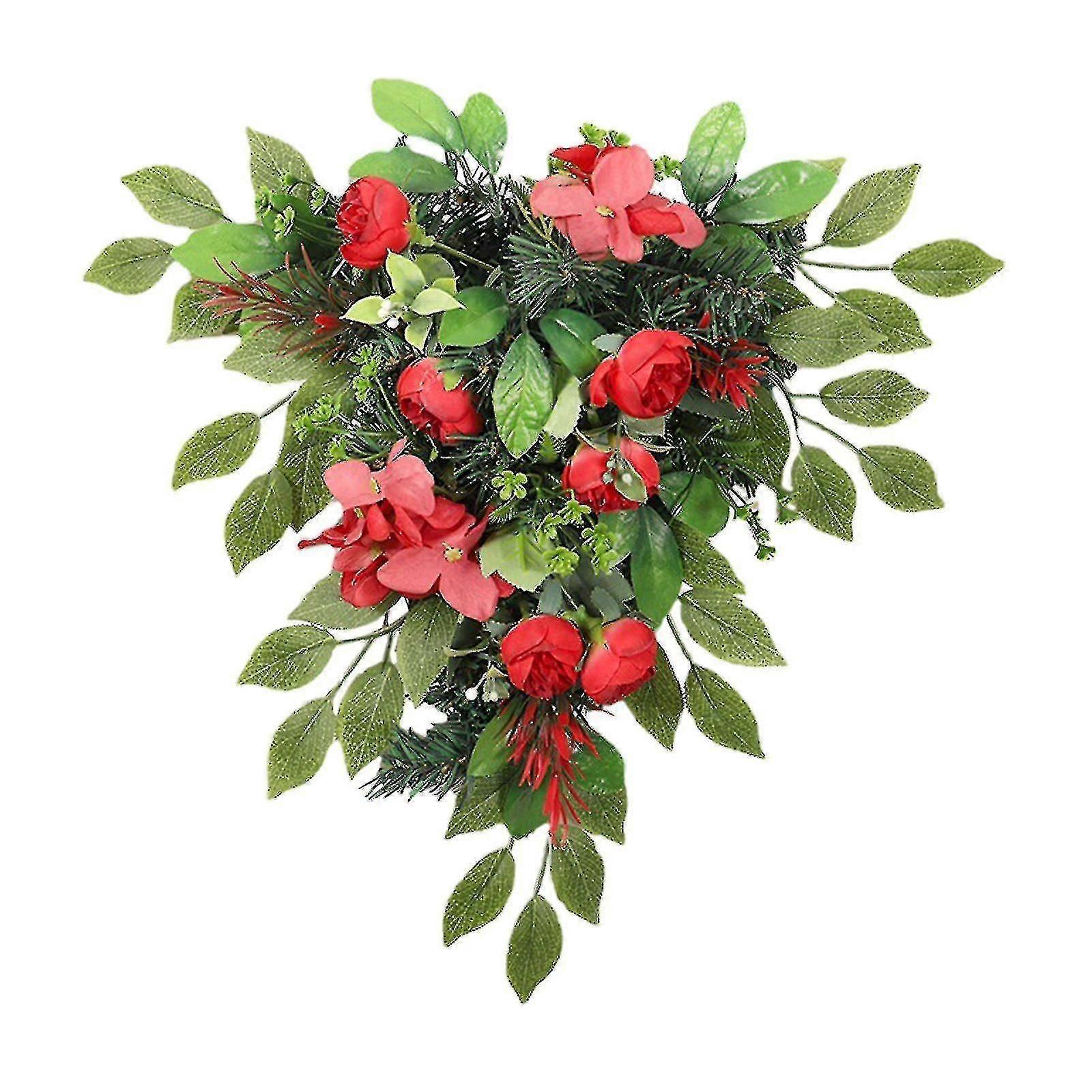 Artificial Teardrop Wreath Red Tea Bud Hydrangea Upside Down Tree Green Plant Door Hanging