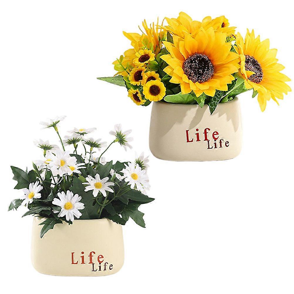 Artificial Flower with Pot Potted Artificial Bonsai Tree Kitchen Ceramic 18.00X12.50X12.50cm 2Pcs