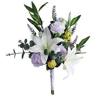 Artificial Lily Flower Bouquet with Leaves and Stem Fake Silk Floral Ornament