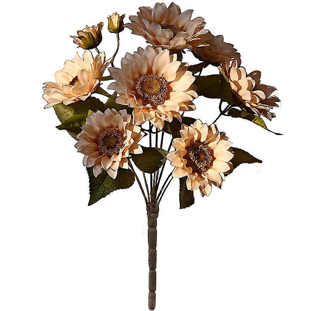 Artificial Sunflower Rustic Painting Style Realistic Silk Sunflower Simulation Champagne