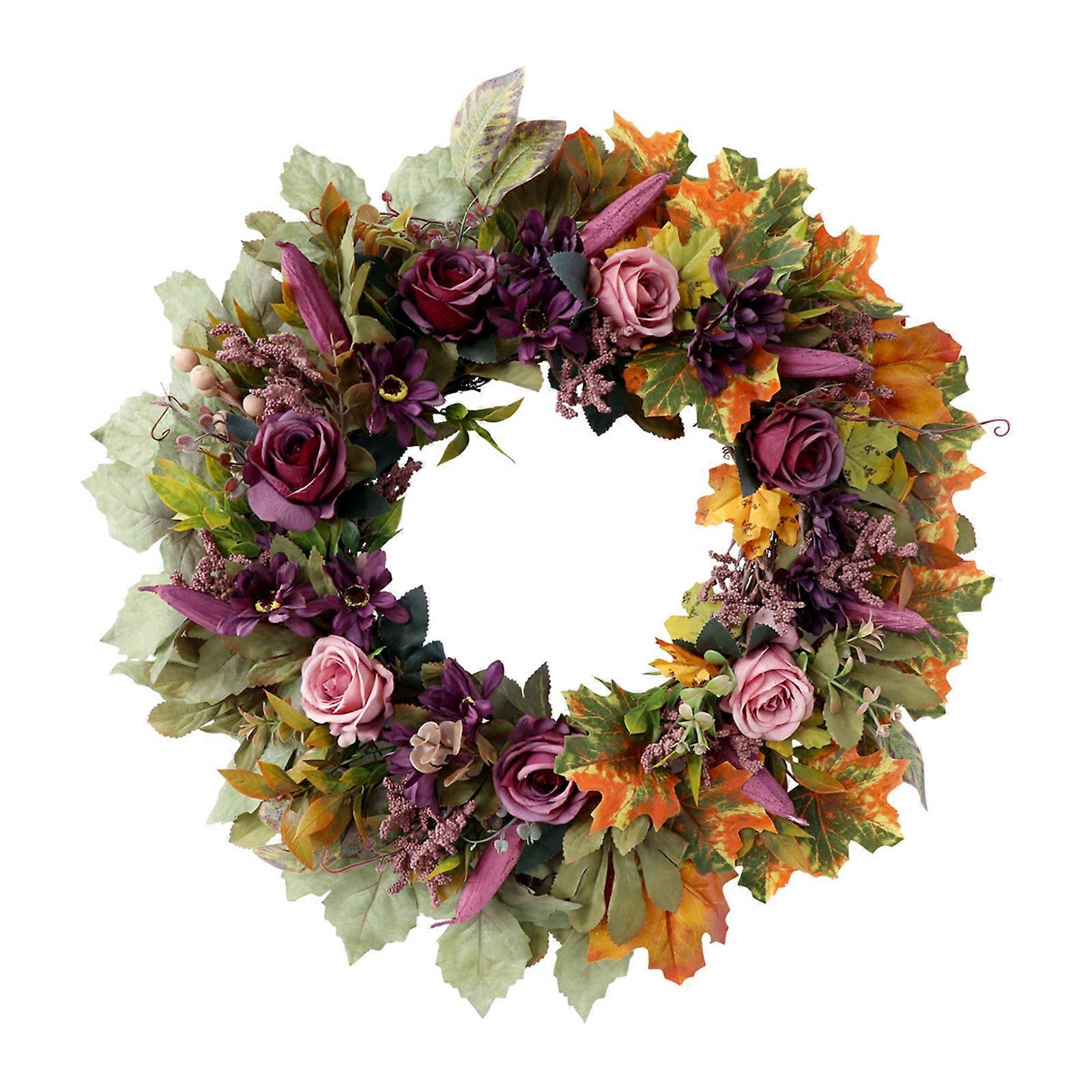 Artificial Rose Flower with Leaves Wedding Wreath Decoration for Front Door Window Hallway Farmhouses Home Decoration