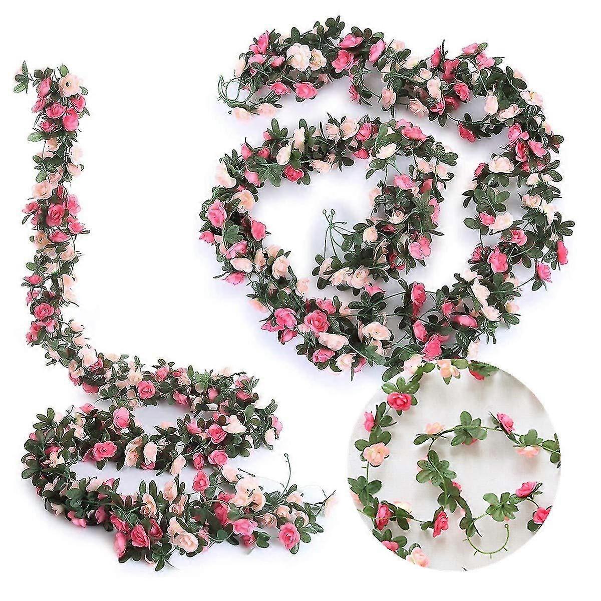 Artificial Rose Flower, 4 Pcs 2.7m Artificial Flower Hanging Rose Garlands For Home Wedding Decor