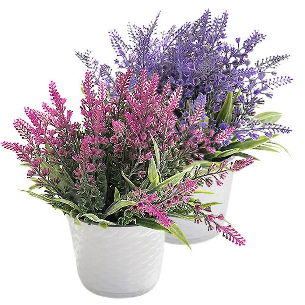 Artificial Lavender Fake Bonsai for Decor 2Pcs Potted Flower Home Adornment