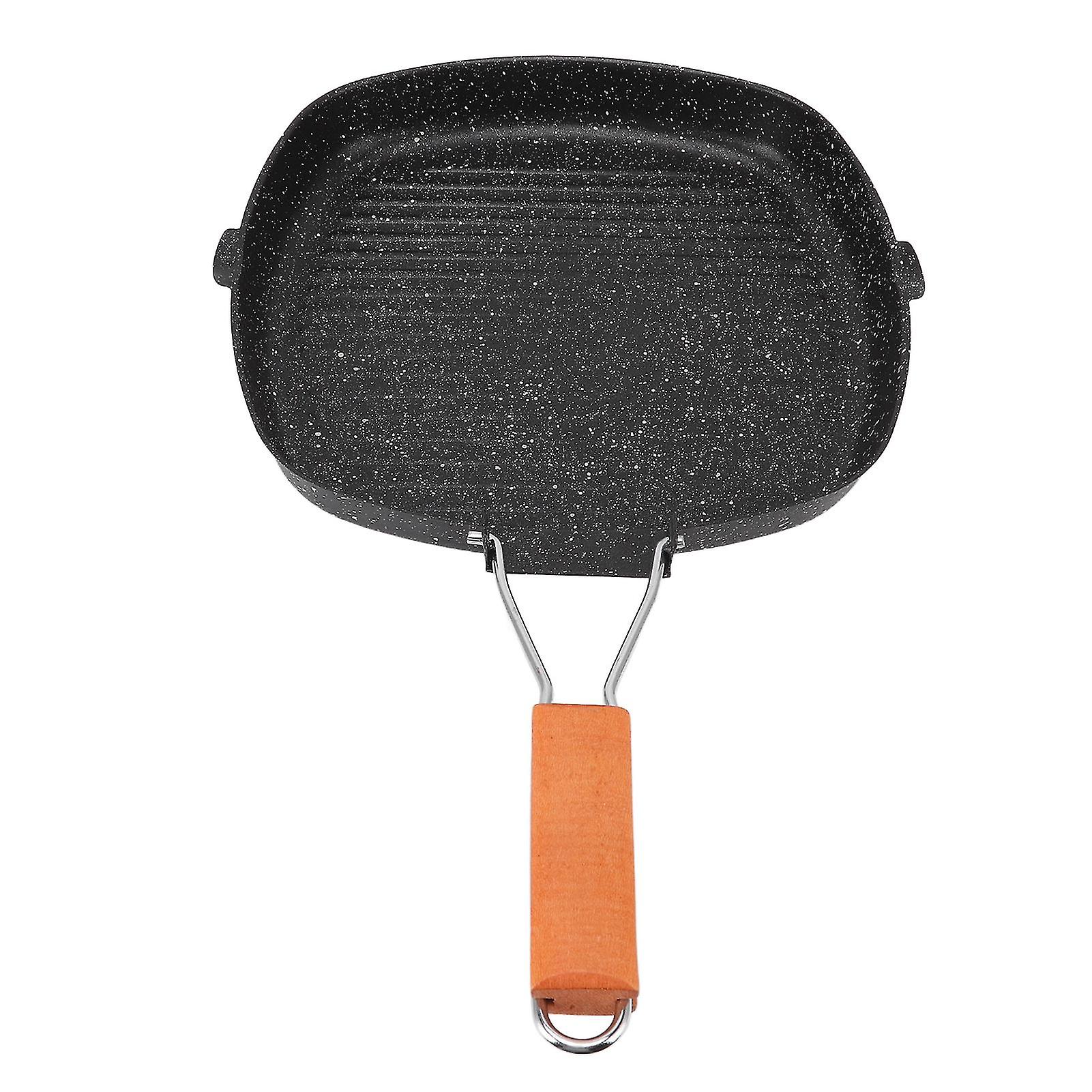 Frying Pan Outdoor Household Folding Beech Handle Energy Saving Non Stick Stripes Steak Special Pan Grilling Pan 28x28cm