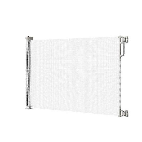 Keep your home safe for children and pets with this retractable gate. It smoothly and stylishly blocks off areas like stairs, doorways, windows, and fireplaces. The retractable design also takes up less space when folded and minimizes the risk of getting caught between wooden slats. Stylish Design Easy to Use Mounting Kit Included Specifications: Color: White Unfolded Size: 140*85cm Applicable Width: 20-140cm Product Material: Steel Pipe + PVC Mesh Folded Size: 12*85cm