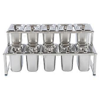 Τηλεσκοπικός διανομέας καρυκευμάτων διπλής στρώσης ανοξείδωτο χάλυβα μαρμελάδα σχάρα δοχείων για το κατάστημα τσαγιού γάλακτος Οικιακή λεκάνη 1.6L 10τμχ