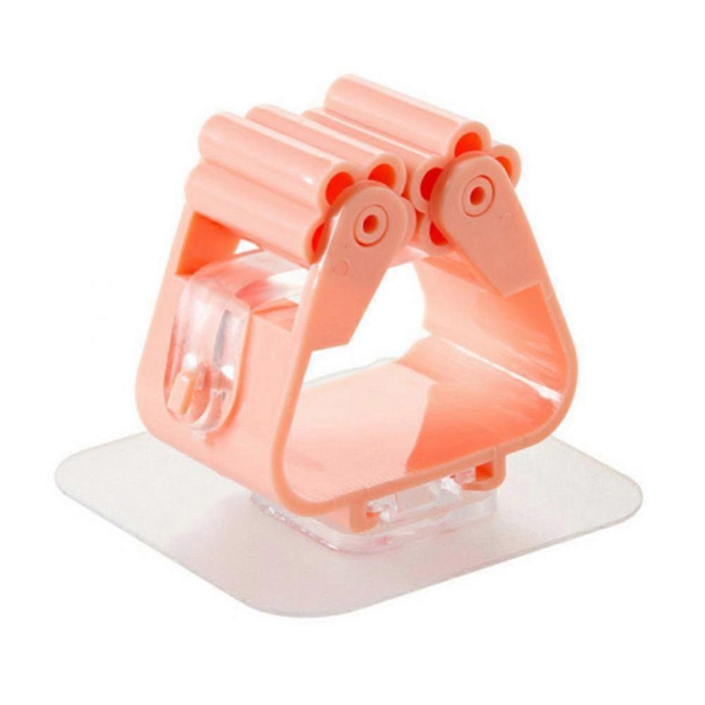 Wall Mount Adhesive Mop Broom Holder Hanger Brush Home Cleaning Tools Organizer (Pink)