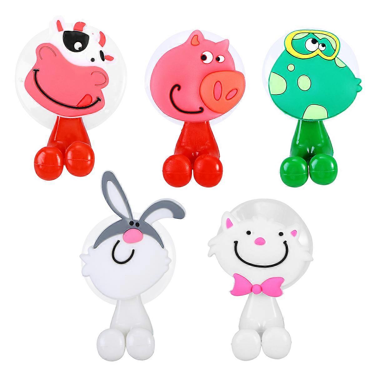Bathroom Suction Cup Toothbrush Holder Animal Model Assorted Color 8.80x4.50x4.00CM Wall Mountable Holds Toothbrush 5Set
