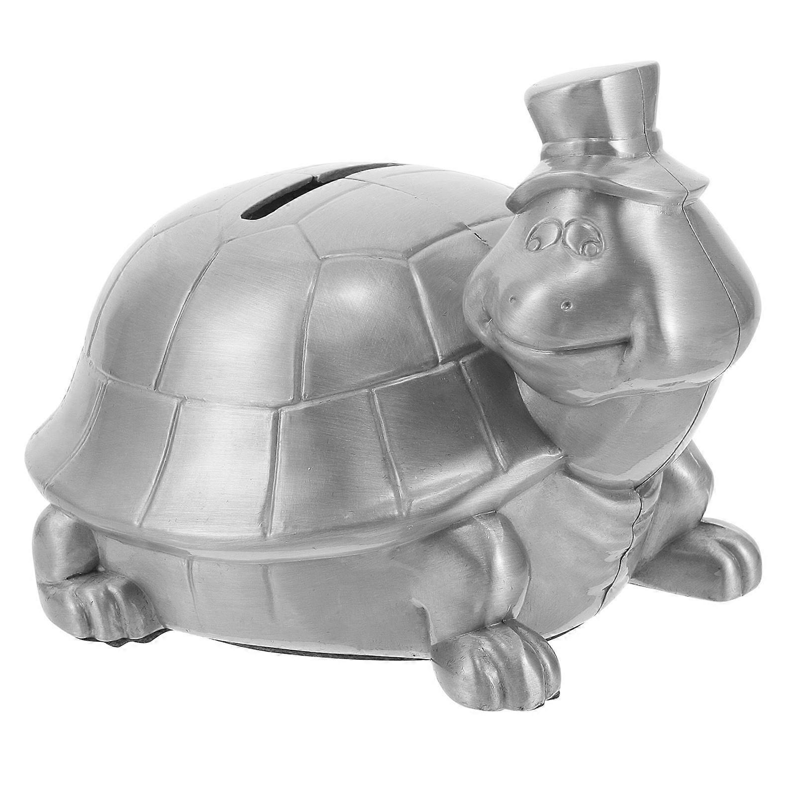 Metal Coin Banks Turtle Shaped Decorative Saving Box For Living Room Home Office Store Silver 1Set