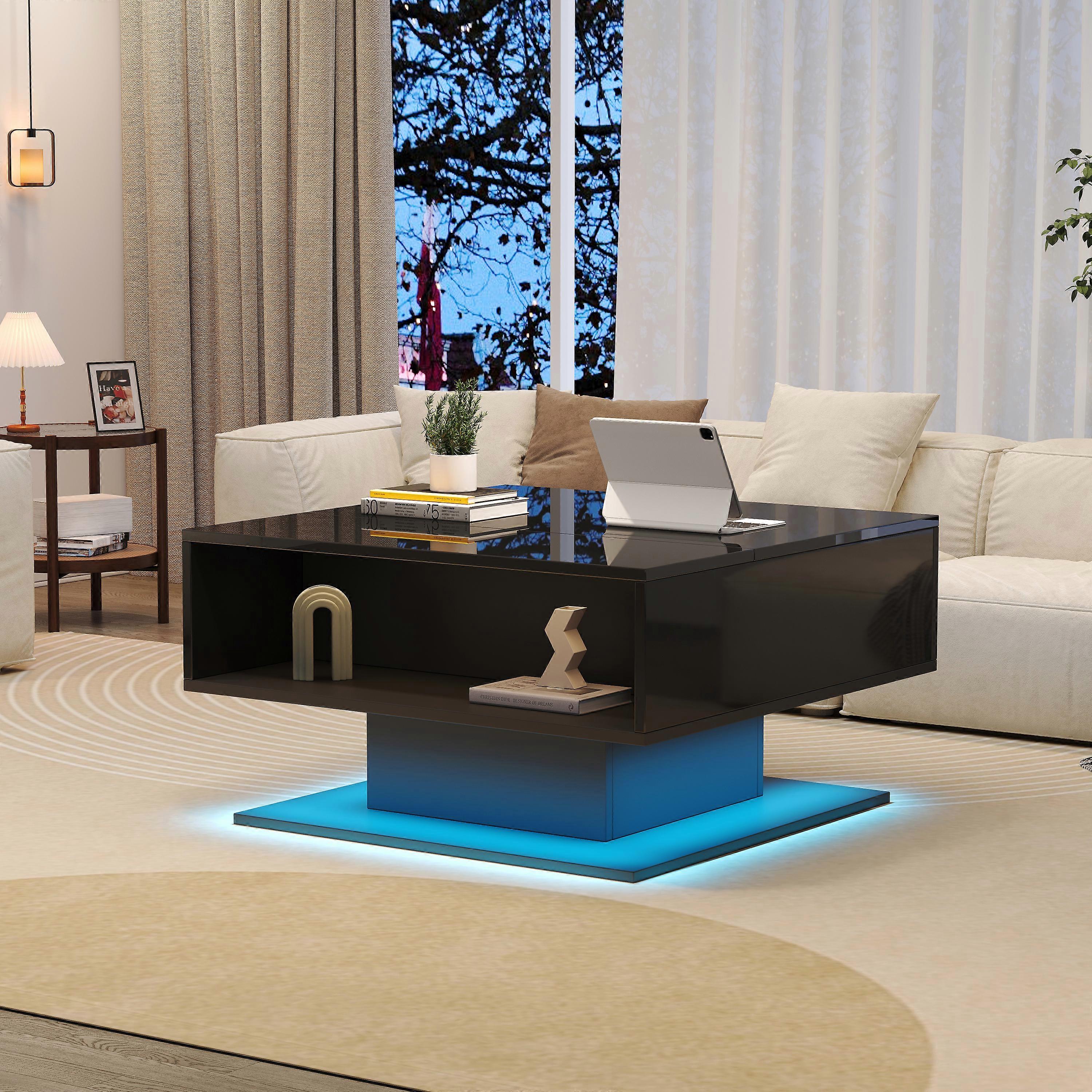Hydraulic Lift Up Storage Coffee Table Black 80x77x40cm Geometric Accent