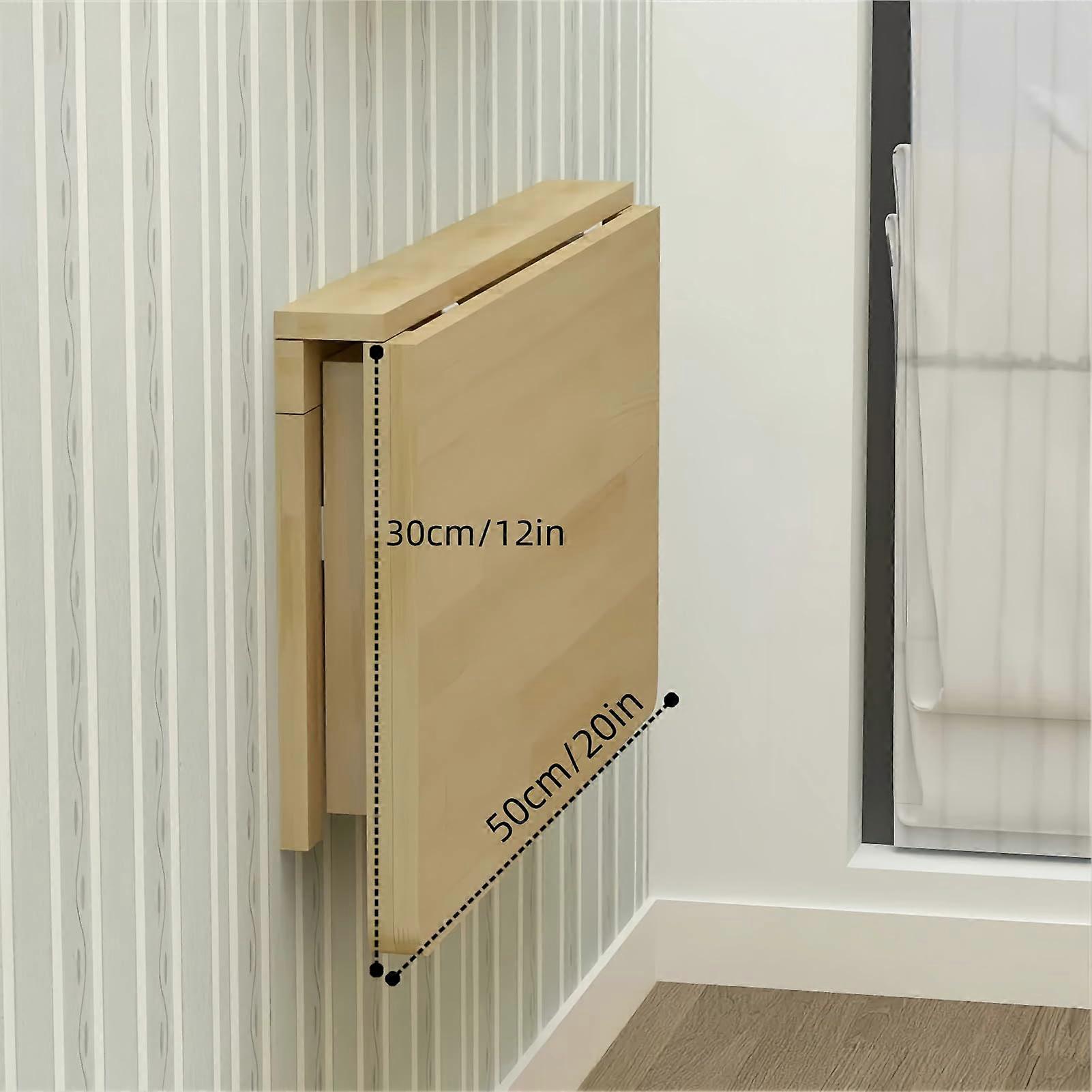 Solid Wood Hidden Dining Table DropLeaf Folding Desk WallMounted Multifunctional Table Natural 50x30 Cm (20x12 In)