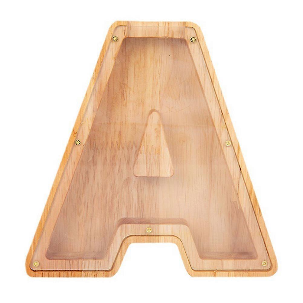 Letter Bank Decorative Money Pot Household Wooden Piggy Bank Desktop Adornment Coin Storage present Khaki 18X18CM 1Pcs