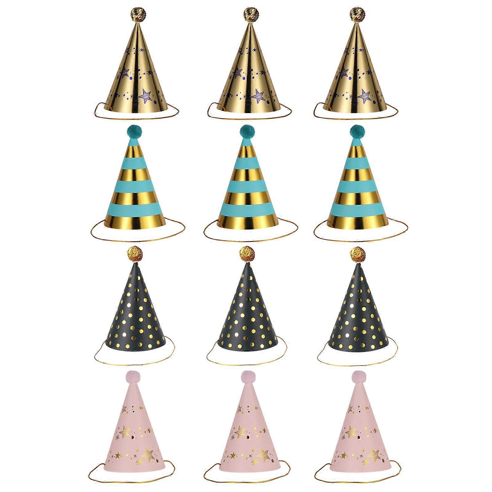 Tricorne Party Hats Paper Crown Caps Birthday Party Cone Hats Assorted .52x4.52x7.07in Kids Families 12Pack