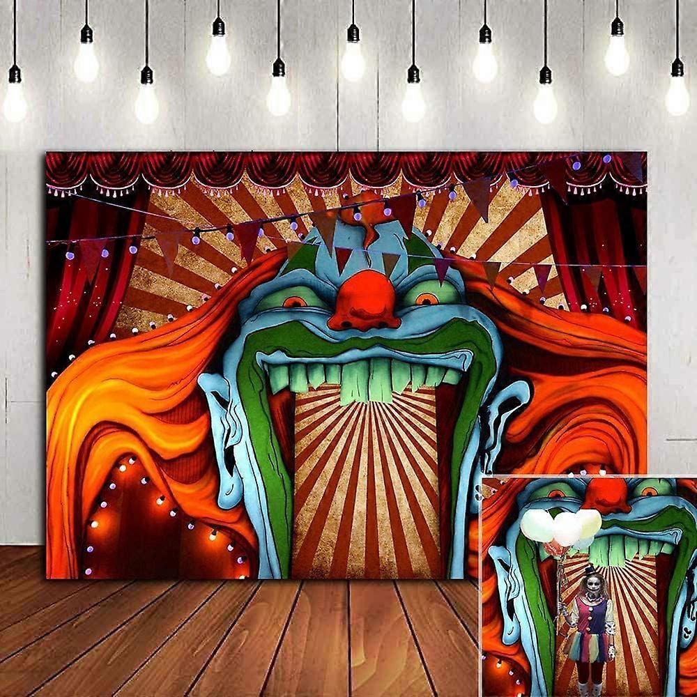 Scary Giant Clown Photography Backdrop Red White Stripe Carnival Photo Background Photo Booth Studio Props Supplies Horror Circus Haunted House 7x5ft