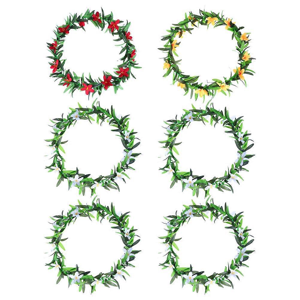 Tropical Hawaiian Flower Lei Garland Hawaiian Leis Party Decoration Green Leaf Necklace 6Pack