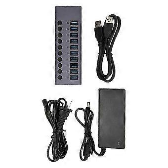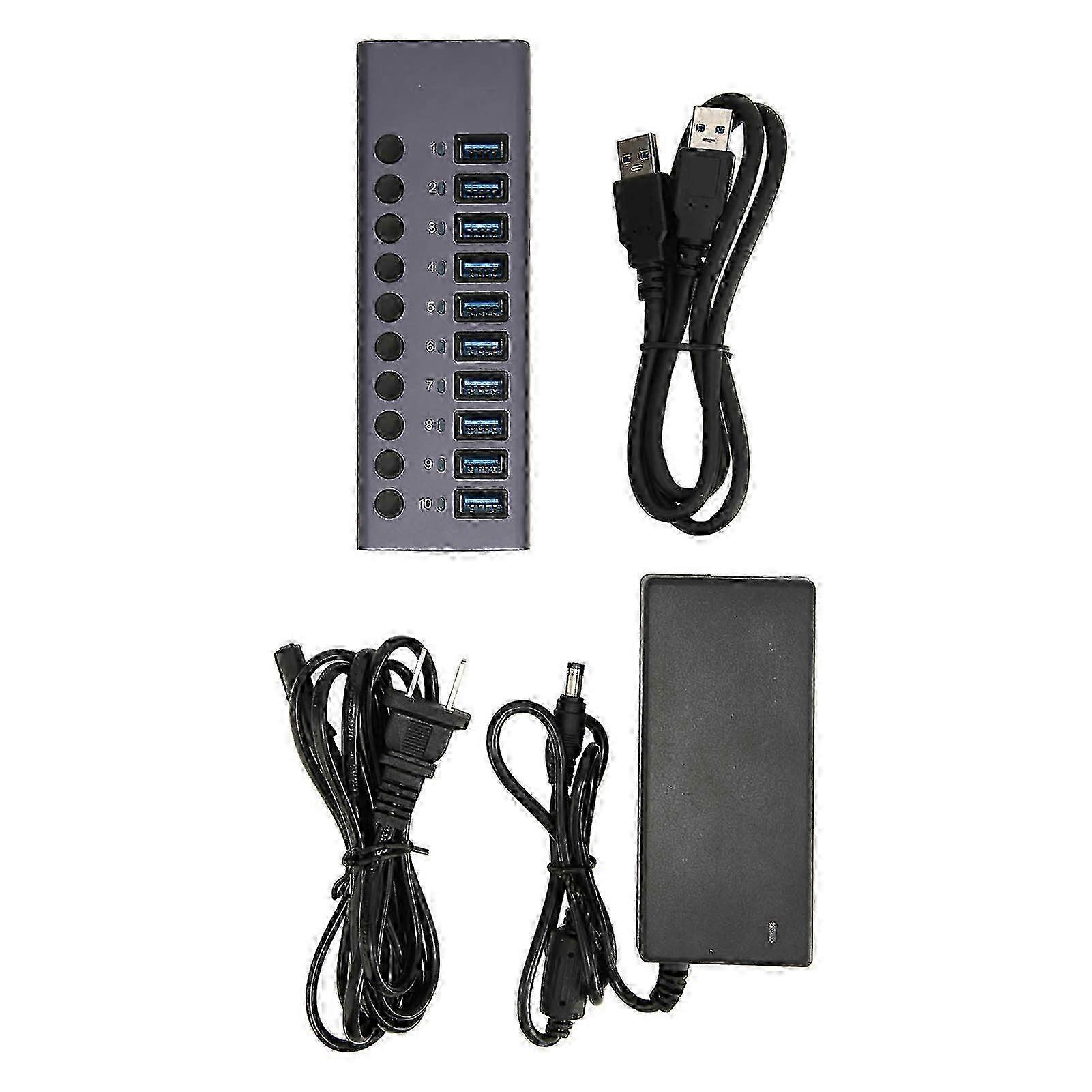 Powered USB Hub 10 Ports Individual Switch Aluminum Alloy 5Gbps Transmission USB 3.0 Hub for PC Laptop HDD 100‑240V