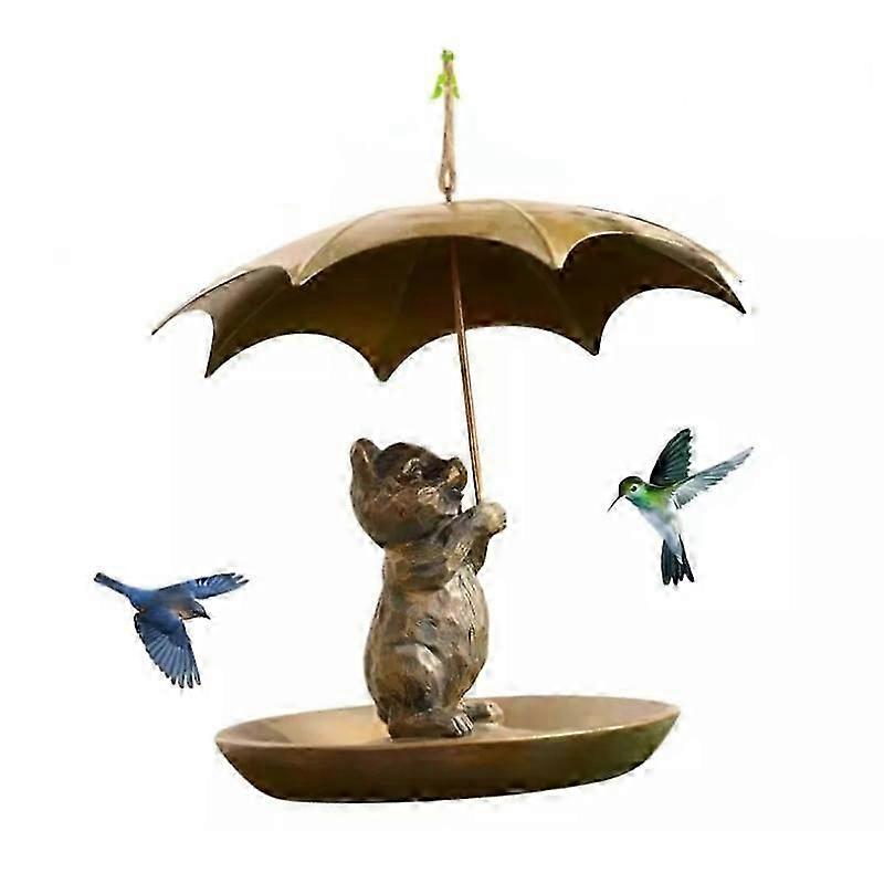 Animal Bird Feeder with Umbrella-Cute Squirrel/Cat/Dog Hold Umbrella Bird Feeder