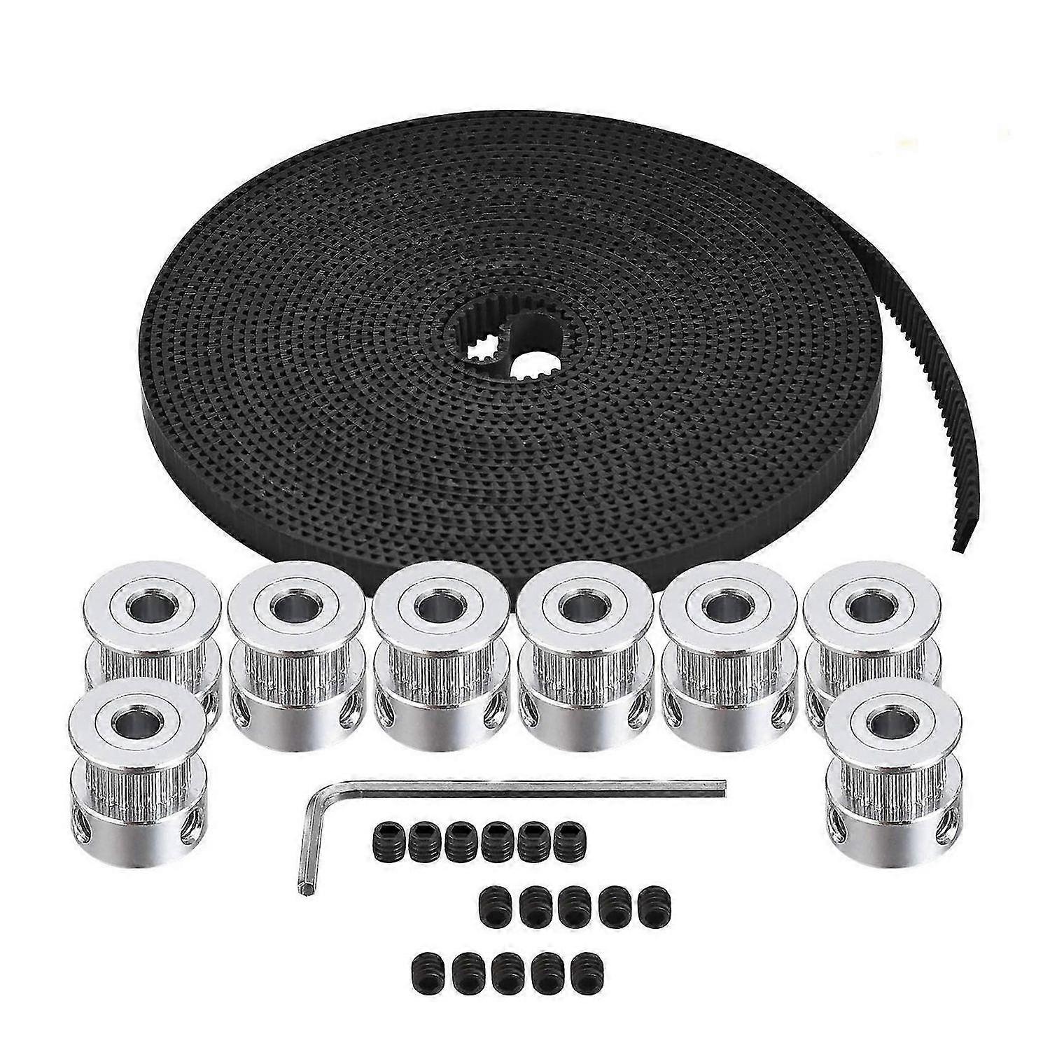 Timing Belt Pulley, 8 Pcs 5mm 20 Teeth Timing Pulley Wheel and 5 Meters Rubber 2mm Pitch 6mm Wide