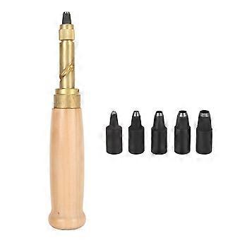 Screw Hole Punch Brass Wooden Handle Adjustable Effort Saving Japanese Screw Punch with 5 Tips for Belt Watchband Bag