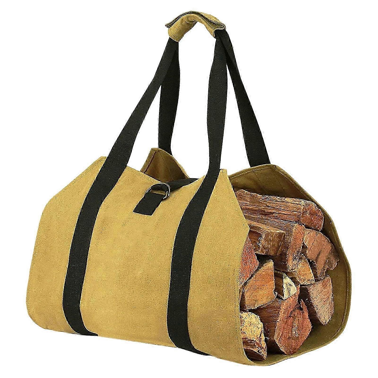 Storage bag for firewood, waxed canvas, outdoor, camping, logs for carrying bag, firewood holder with handles