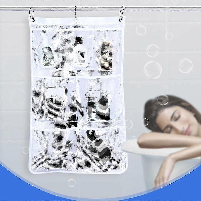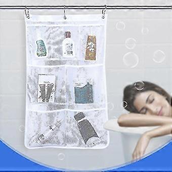 2025 Bathroom Mesh Storage Bag 7 Grid Transparent Hanging Storage Bag With Hook For Bathroom