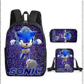 Τσάντα Δημοτικού Σχολείου Sonic Σετ τριών τεμαχίων Anime Σακίδιο κινουμένων σχεδίων Τσάντα ώμου Μολυβοθήκη υψηλής ποιότητας
