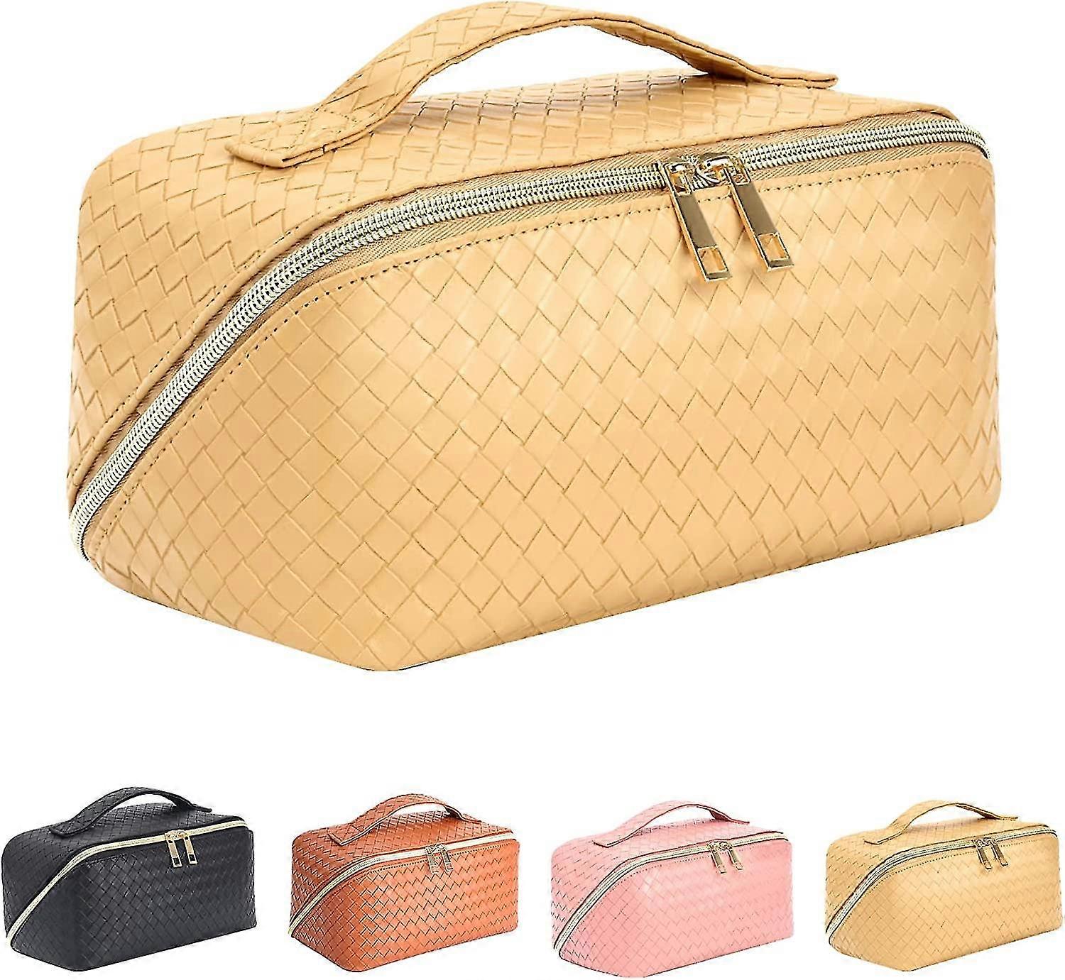 Makeup Bag, Large Capacity Portable Leather Waterproof Travel Cosmetic Bag With Handle Peachloft Cosmetic Bags