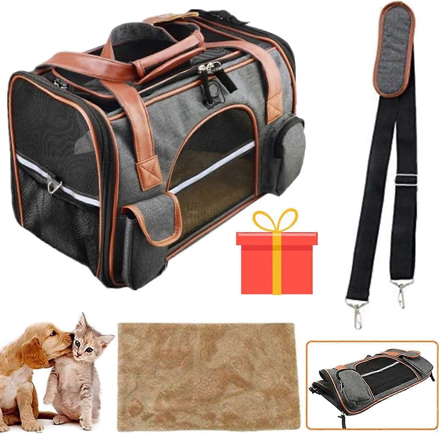 Pet Cat Dog Carrier Bag, Portable Breathable Cat Dog Carrier Bag with Silicone Folding Bowl Mat, Travel Bag for Airplane Car Train (Dark Grey)