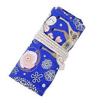 Pencil Roll Bag Blue Deer Pattern Canvas 48-Holes Large Capacity Storage Bag Stationery