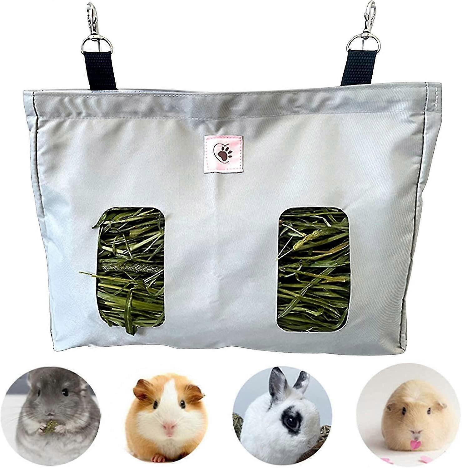 Rabbit Hay Bag, Rabbit Hay Feeder Bags, Hanging Hay Feeder Bag for Small Animals, for Rabbit/Guinea Pigs/Chinchilla(Grey)