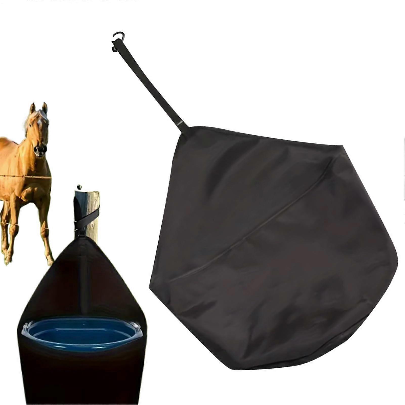 - Durable Construction: Crafted from 900D polyester fabric with a dense weave, this horse food bag is designed to endure extreme loads and harsh weather conditions, ensuring long-lasting performance. Its tear-resistant material provides reliable durability, even under heavy feed loads and intensive outdoor use. - Safe and Secure Storage: The sturdy round base prevents spills and ensures safe storage for up to 19 litres (5 gallons) of food or liquid. With an advanced weight distribution design, it offers optimal leakage protection, keeping your feed secure. - Versatile Compatibility: Featuring a sophisticated belt system with double-stitched retaining points, this bag easily adapts to all stable hooks and trailer brackets. You can enjoy back-friendly filling and infinitely adjustable height to suit your needs. - Hygiene First: The continuously closed seam technology prevents mold formation, allowing for easy maintenance. Simply wipe the surface with a damp cloth for quick and effective cleaning. Use Scenarios: - Perfect for stable owners who need a reliable solution for storing and dispensing horse feed without spills. - Ideal for transporting feed to shows or events, ensuring that your supplies remain secure and accessible. - Great for outdoor use, providing a durable and weather-resistant option for feeding in various environments. This horse food bag combines functionality, compatibility, and hygiene, making it an essential tool for any horse owner.