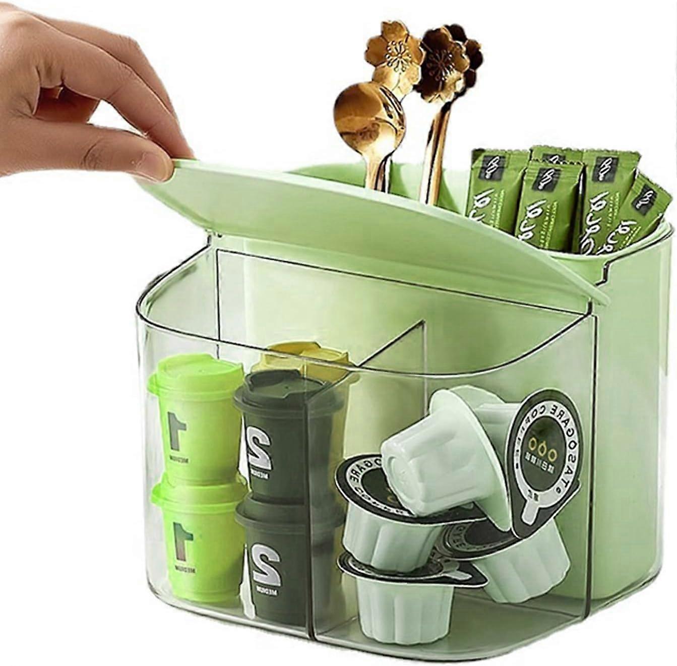 Tea Bag Coffee Capsule Sugar Storage Holder Tea Box Containers Tea Packet Rack Teabag Shelf Tea Station Stand for Cabinet Countertop (Green)