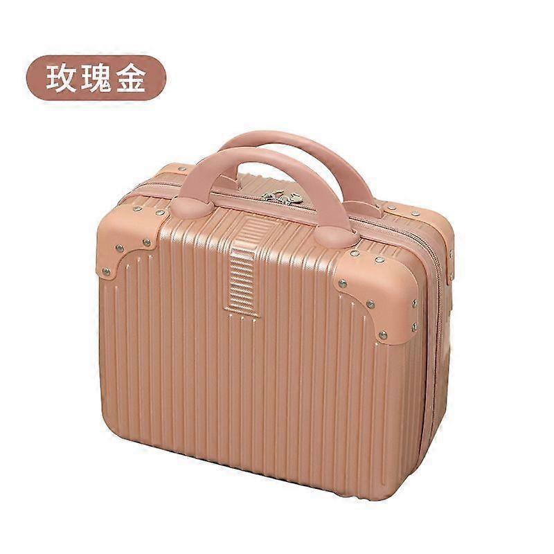 Right-angle rose gold 14-inch handbag, a retro-style travel case for women, a small cosmetic case, lightweight and with a large capacity, and a