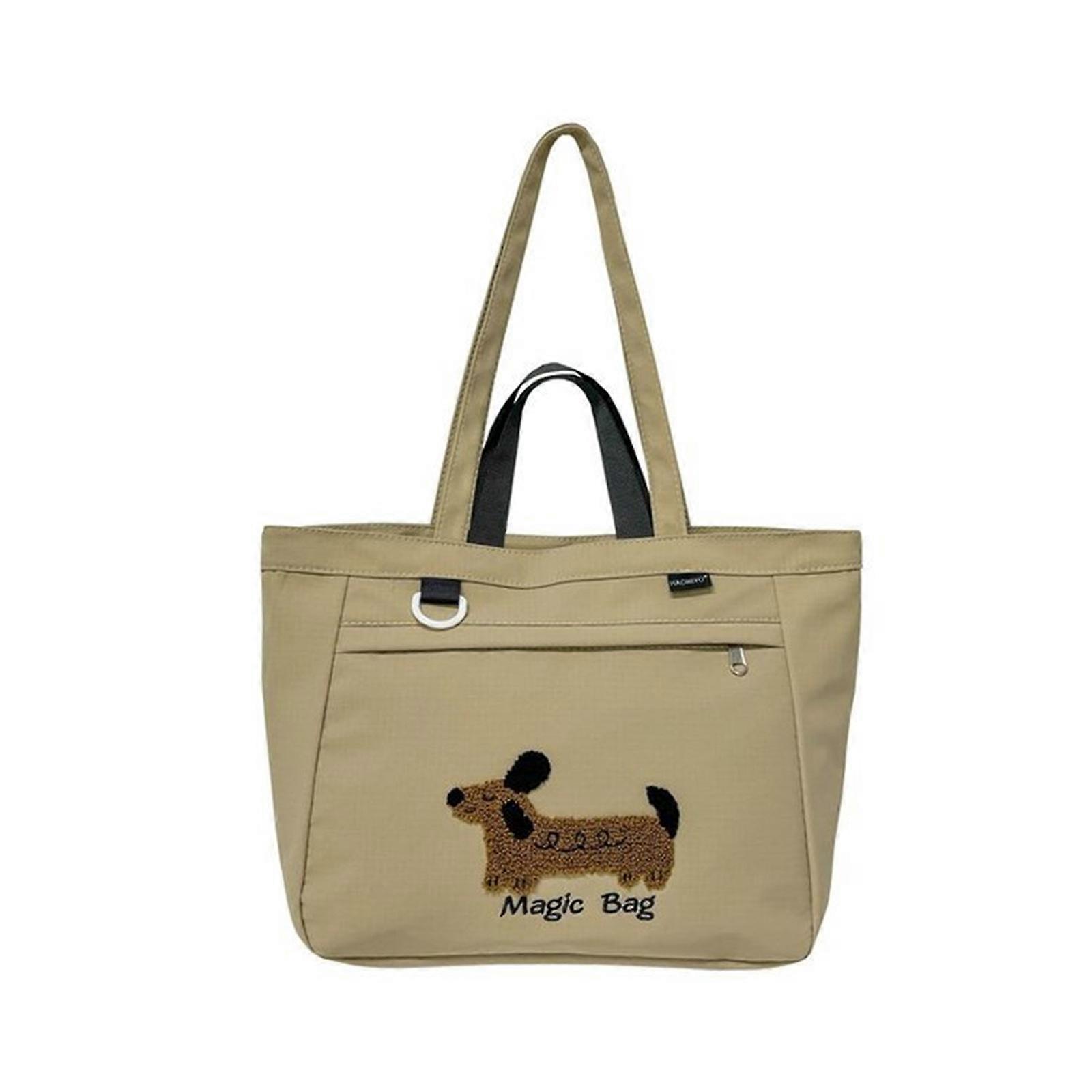 Cartoon Dog Shoulder Bag Large Capacity Shopping Bag Top Handle Bag Fashion Handbag All-Matching Work Bag for Travel Khaki