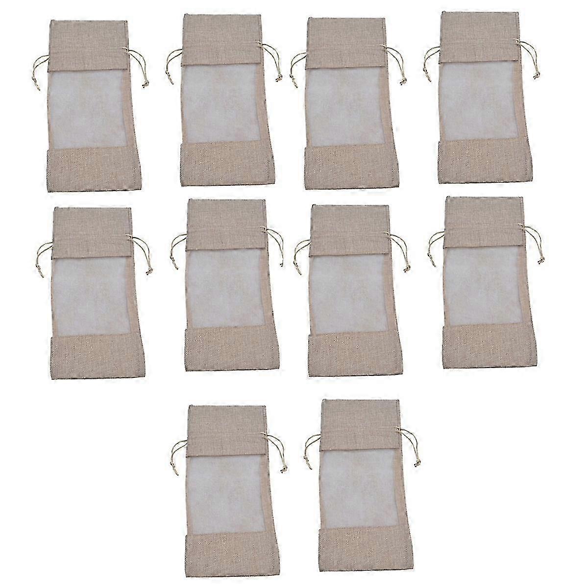 10Pcs Burlap Wine Bottle Bags with Sheer Window for Wine Tasting Favors