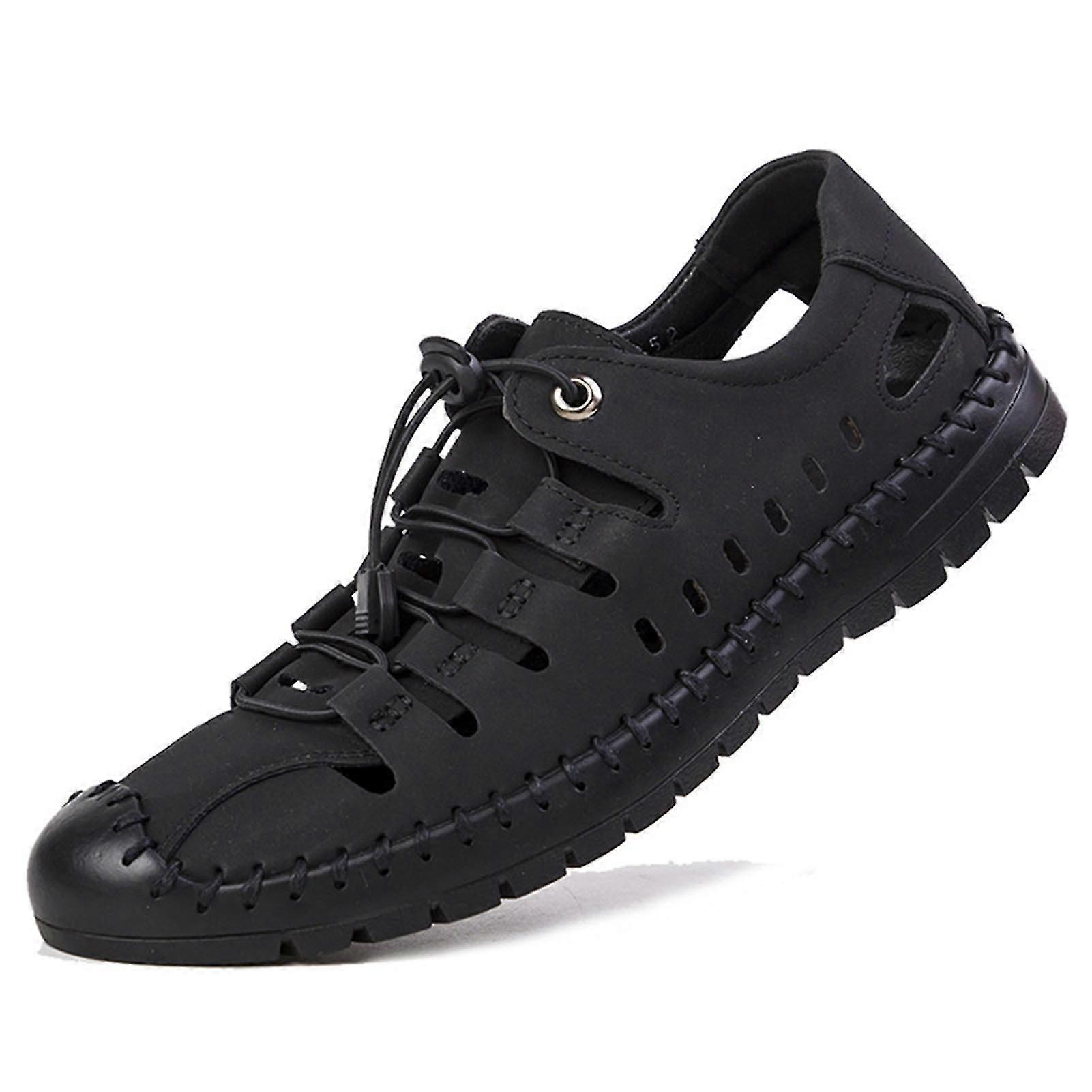 Wrapped Toe Hollow Leather Sandals for Men Hiking Shoes for Summer/Beach