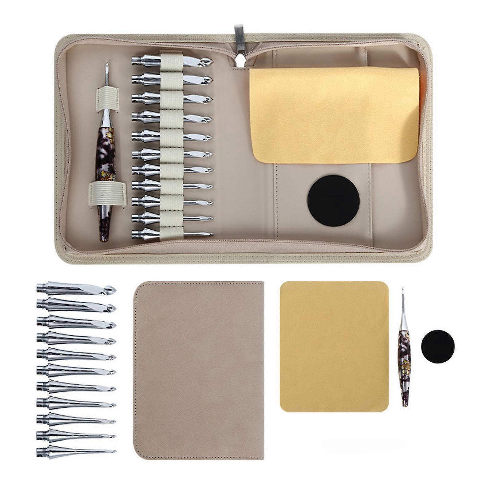 Features: Experience the versatility and durability with our interchangeable crochet hook set, featuring 11pcs detachable interchangeable aluminum tip and ergonomic handle. 11 different size interchangeable tip: 3.5mm, 4.0mm, 4.5mm, 5.0mm, 5.5mm, 6.0mm, 6.5mm, 7.0mm, 8.0mm, 9.0mm, 10mm. Different size and sufficient quantity to meet your knitting and crafting need. Suitable for adult, beginner and crochet enthusiasts, these ergonomic grip crochet hook caters to various skill levels, ensuring comfortable and efficient knitting and crafting experience. Widely used for knitting, weaving sweater, scarf, socks, bag, hat, lace knitting, shawls, blankets, crochet craft project. Warmful holiday present for your mother, family or friend. Whether participating in knitting classes or showcasing at craft exhibition, these crochet hook set enhances your creativity and craftsmanship. Specifications: Color: Silver Component: Wood; Metal Leather Case Size: Approx. 16x21cm/6.29x8.27in Interchangeable Tip Size: Approx. 7.1cm/2.79 Handle Length: Approx. 10cm/3.94in Weight: Approx. 366grams Package Includes: 1Piece Crochet Hook Handle 11Pieces Interchangeable Tip 1Piece Leather Case note: 1.Please allow 0-1cm error due to manual measurement. Be sure you donot mind before bid. 2.Due to difference between different monitors, the picture may not reflect the actual color