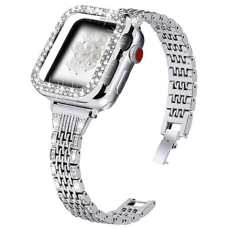 Type B Shiny Rhinestone 7 Beads Stainless Steel Watchband Strap + Protective PC Watch Case Cover