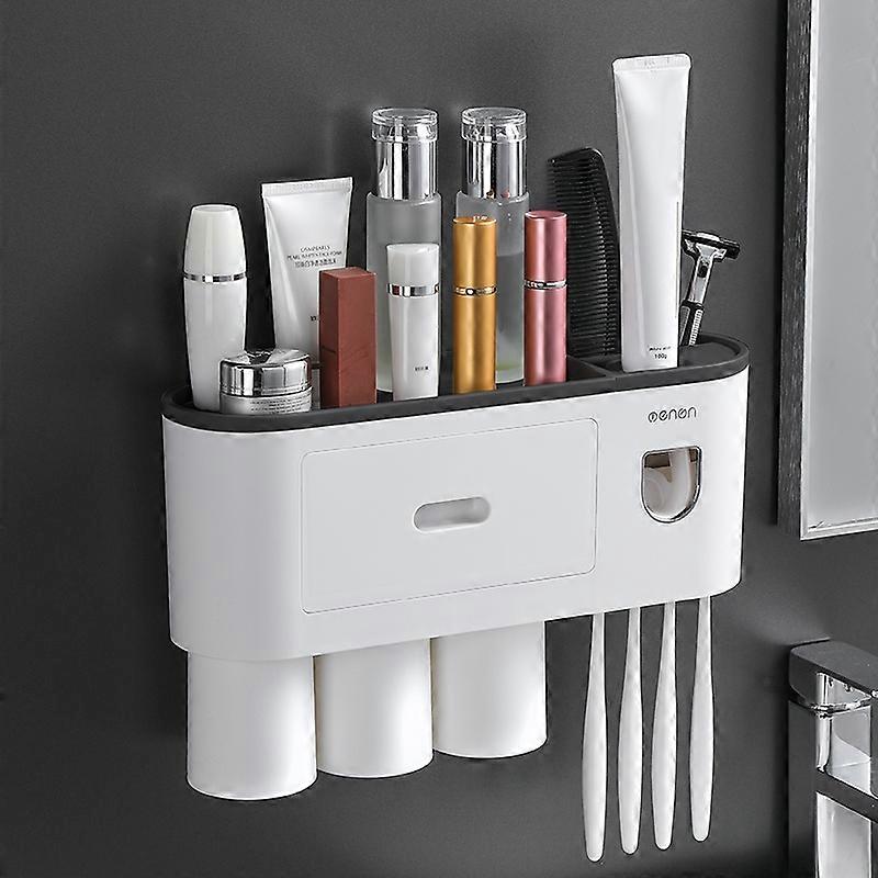 Type B MENGNI Wall Mounted 3 Cups Toothbrush Holder with Toothpaste Dispenser,4 Brush Slot