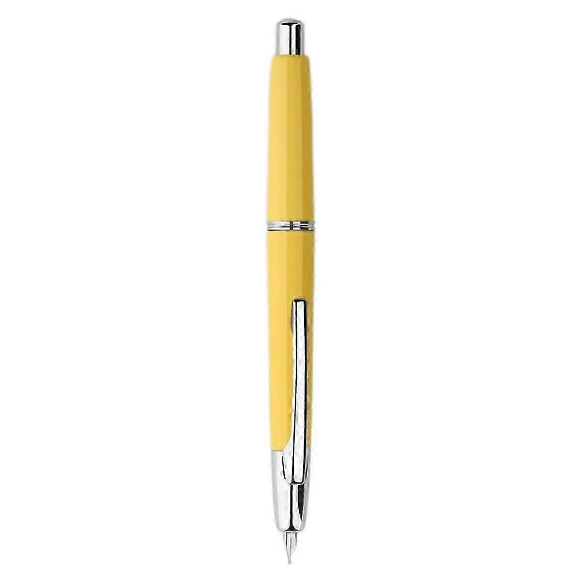 Press Resin Fountain Pen Extra Fine Nib 0.4mm Ink Pen Converter for Writing Gift Yellow(Silver Clip